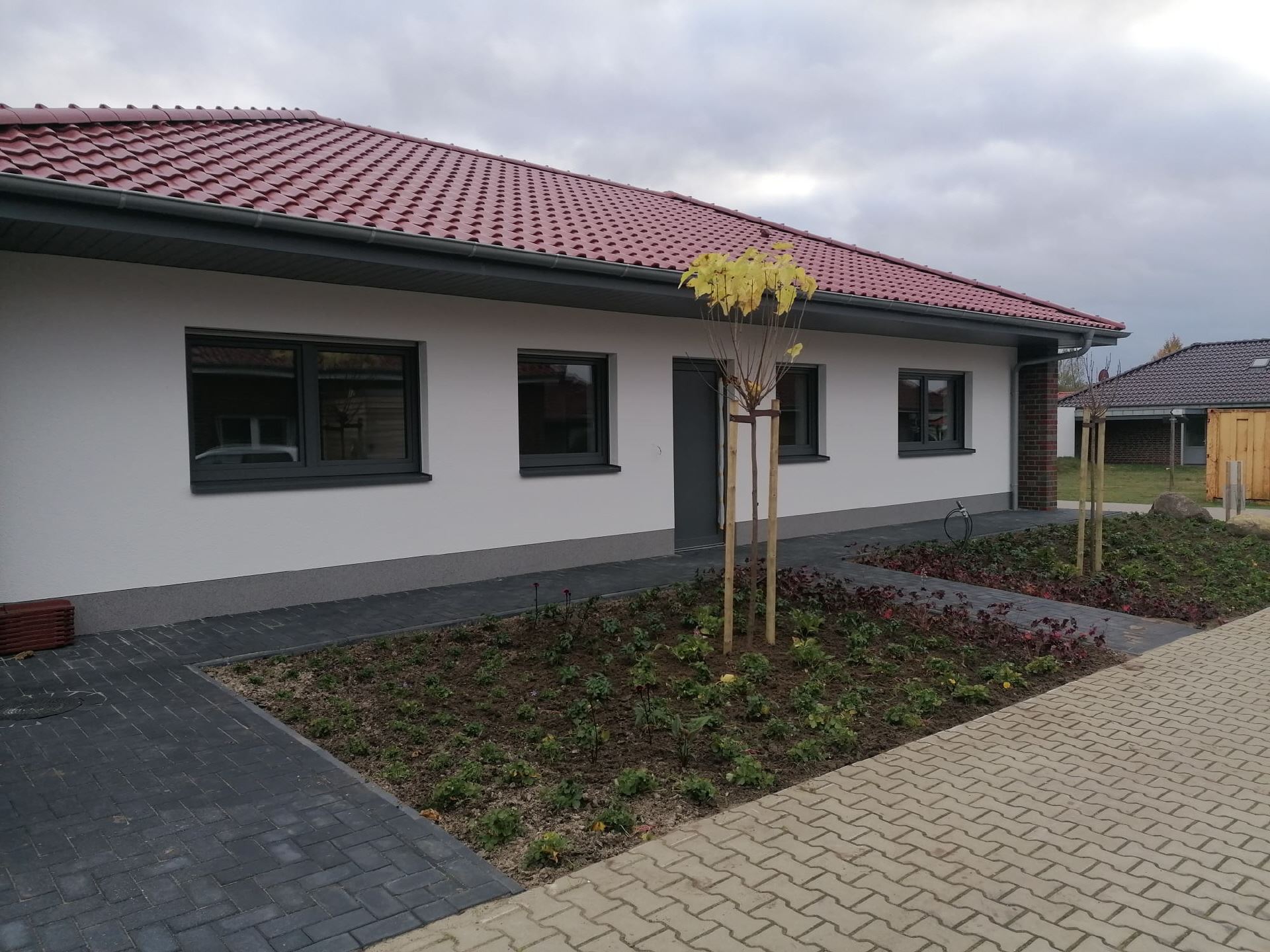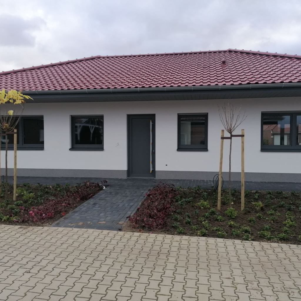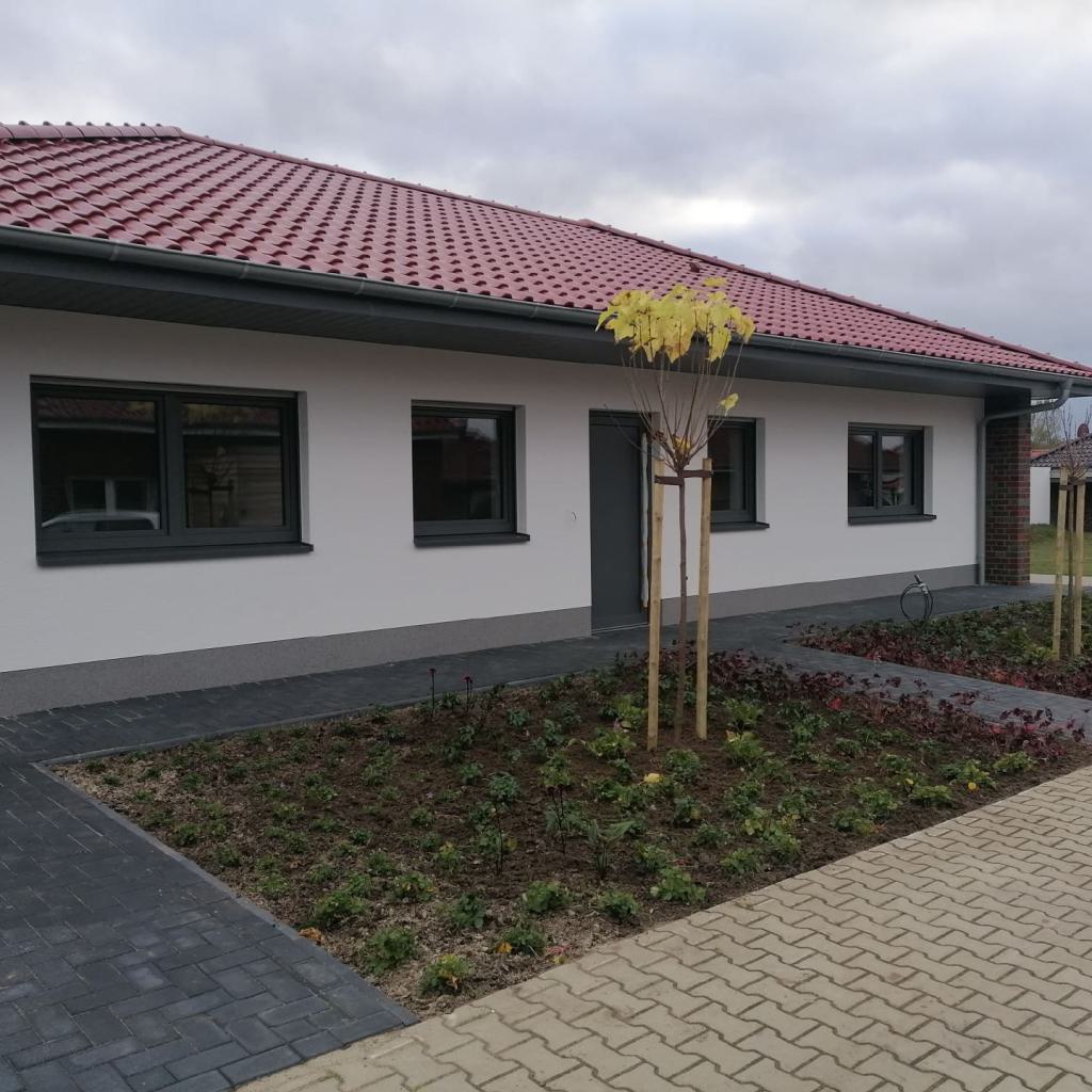 Das Ferienhaus 61 Auszeit ist im Bungalowstil errichtet und verfügt über eine gehobene Ausstattung. Das Haus wäre für 6 Personen geeignet und hat ein großes Schlafzimmer sowie zwei weitere Schlafzimmer mit je zwei Betten. Weiterhin steht ein Arbeitsraum mit Waschmaschine zur Verfügung. Ein großes Wohn- Esszimmer mit intrigierter Küchenzeile ist vorhanden und perfekt für eine Auszeit geeignet. Eine großzügige Terrasse lädt zum Verweilen ein, die sich auf der Rückseite des Hauses befindet.