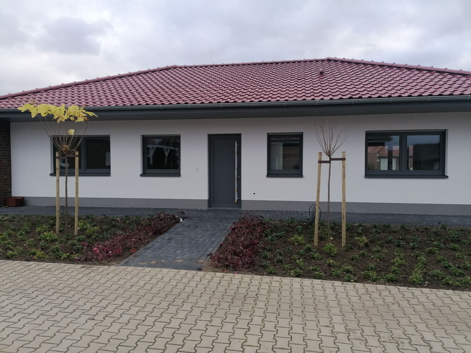 * Parkplatz mit Carport am Haus
