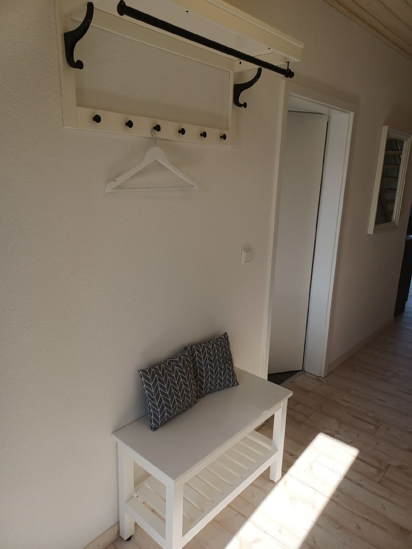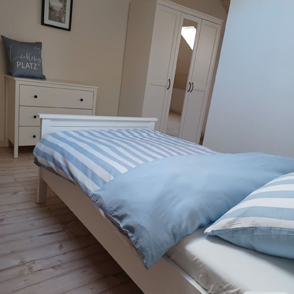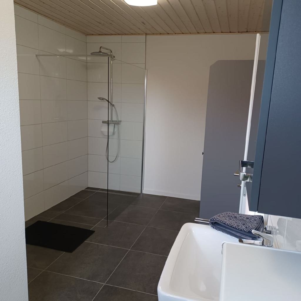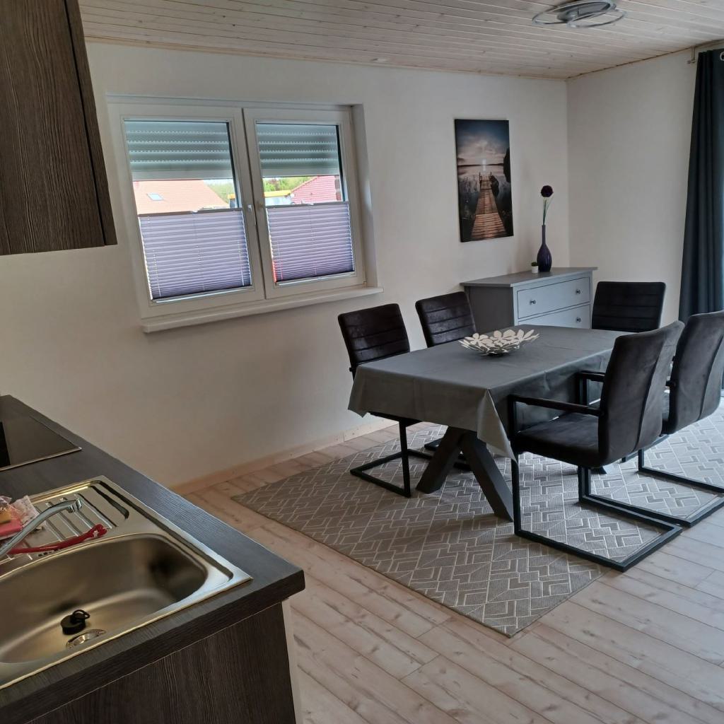 Das Ferienhaus Kranich hat im Erdgeschoss ein großes Bad mit einer begehbaren Dusche. Eine Separate Gästetoilette ist vorhanden. Weiterhin befinden sich in der unteren Etage ein Schlafzimmer mit einem Einzelbett und ein Schafzimmer mit einem Doppelbett. Im Obergeschoss gibt es ein großes Schlafzimmer mit einem breiten Boxspringbett sowie einem Einzelbett und einem Kinderbett. Ein gemütliches Wohnzimmer mit Essbereich und einem Ausgang zum Garten laden zum Verweilen an. Eine überdachte Terrasse ist mit entsprechender Bestuhlung steht den Gästen zu Verfügung.