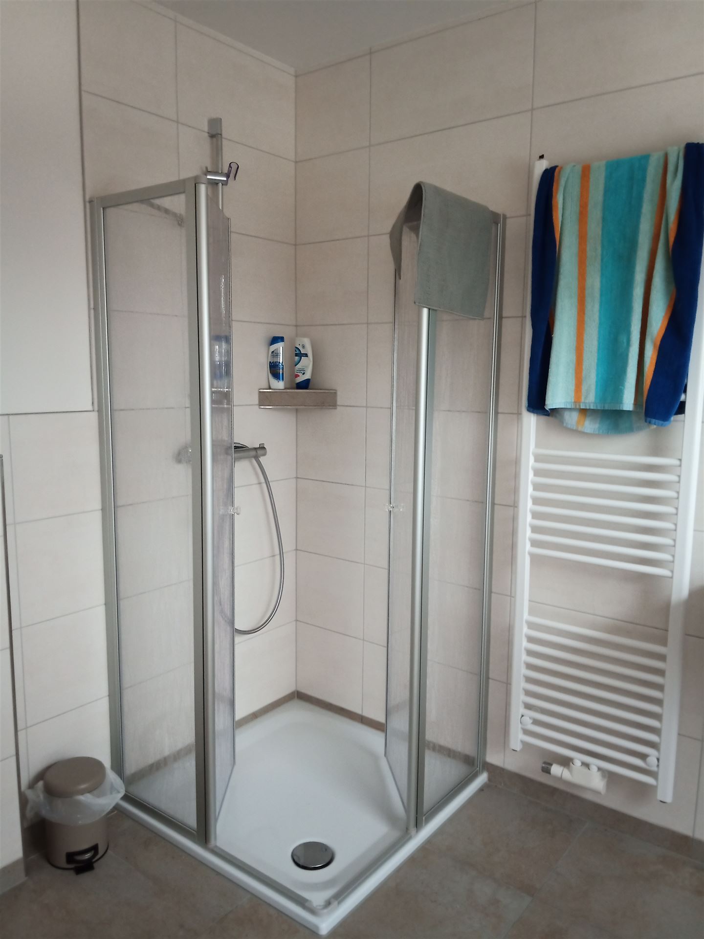 Ferienhaus Haus 13 Deichblick Das Ferienhaus Deichblick verfügt über eine gehobene Ausstattung. Es ist eine gemütlich eingerichtete, circa 115m 2; große Doppelhaushälfte auf zwei Etagen mit PKW-Stellplatz und bietet Platz für bis zu 7 Personen. Im gesamten Haus ist eine Fußbodenheizung installiert, die individuell pro Raum eingestellt werden kann. Sollten sie mehr Platz benötigen, befindet sich das Haus Nummer 15 mit gleicher Ausstattung direkt Nebenan. Im Erdgeschoß befinden sich neben dem Eingangsbereich mit Garderobe folgende Räume: Schlafzimmer: Es ist circa 1Wäschepaket zusätzlich 20,00 €3,5m 2; groß und mit einem Doppelbett und einem großen Schrank ausgestattet. An der Wand ist ein Smart TV montiert. Badezimmer: Ca. 6,5m 2; groß mit Waschbecken, Dusche und WC. Für die Handtücher ist zusätzlich zur Fußbodenheizung ein Badheizkörper montiert. Wohnraum/Esszimmer/Küche: Ein circa 30m 2; großer, offener Raum für die ganze Familie. Hier befindet sich eine gemütliche Ecke mit Sofa und 50Zoll Smart TV zum Entspannen, eine Küche mit einem Kühlschrank, einem Herd mit Ceranfeld, einem Backofen, einer Mikrowelle, einem Geschirrspüler und einer Kaffeemaschine. Die wichtigsten Küchenutensilien, sowie Besteck und Geschirr sind ebenfalls vorhanden. Abstellraum/Technik: Ca. 5m 2;. Hier steht unter anderem eine Waschmaschine zur Verfügung. Terrasse: Die knapp 30m 2; große, überdachte Terrasse sorgt für eine erholsame Auszeit. Im Obergeschoss befinden sich darüber hinaus für weitere Gäste noch folgende Räume: Schlafzimmer 1: Ein circa 14m 2; großes Schlafzimmer mit 2 Betten, einem großen Schrank und einem Smart TV an der Wand. Die Betten können auf Wunsch zusammengeschoben werden. Schlafzimmer 2: Ein circa 15m 2; großes Schlafzimmer mit 2 Betten, einem großen Schrank und einem Smart TV an der Wand. Die Betten können auf Wunsch zusammengeschoben werden. Schlafzimmer 3: Ein circa 9m 2; großes Schlafzimmer mit 1 Bett, einem Schrank und einem Smart TV an der Wand. Badezimmer: Ein zweites, knapp 12 m 2; großes Badezimmer bietet den Gästen im Obergeschoss ein eigenes Bad. Es ist, wie im Erdgeschoss mit Waschbecken, Dusche, WC und einem Badheizkörper für die Handtücher ausgestattet.